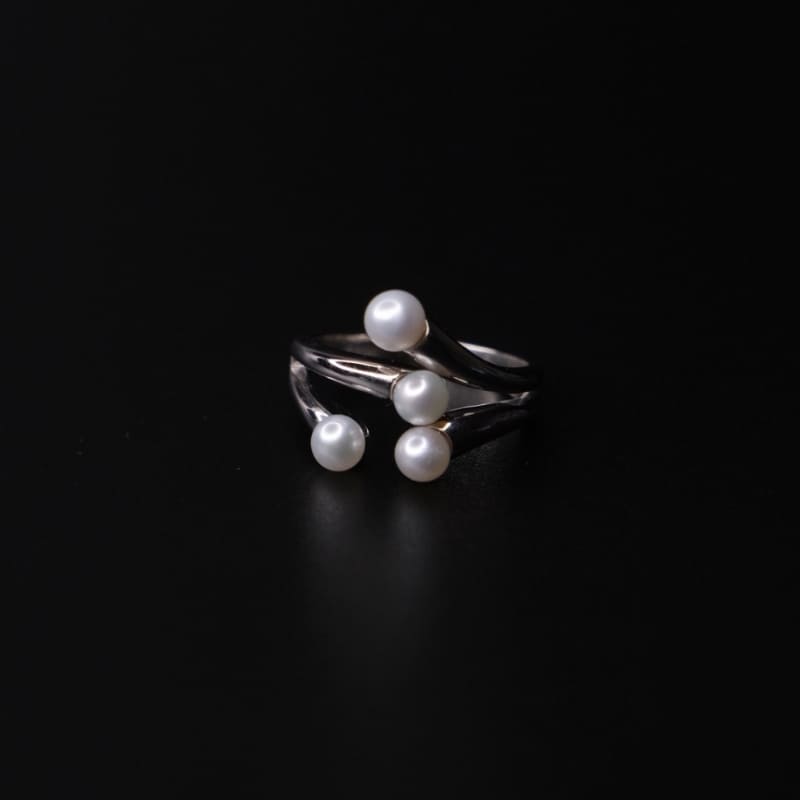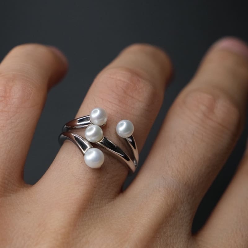 Дөрвөн ширхэг жижиг сувдны зөөлөн гэрэл торгон мэт гялалзаж, гарын хөдөлгөөн бүр дээр анхаарал татах тансаг хийцтэй бөгж.