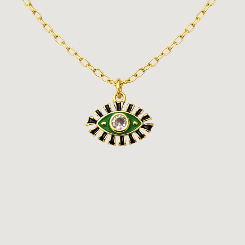 Хамгаалалтын нүдний бэлгэдэлтэй энэхүү зүүлт нь өвөрмөц хийц, утга агуулгатай дэгжин загвартай. Ногоон өнгийн нүдний төв хэсгийг гялалзсан циркон чулуугаар тодотгож, гадна хүрээг хар болон алтлаг детальтайгаар нар мэт цацруулан хийснээр илүү хүчтэй, анхаарал татахуйц харагдуулна. Нүдний бэлгэдэл нь олон соёлд муу энерги, атаархал, сөрөг нөлөөнөөс хамгаалж, эзэндээ аз, эерэг энергийг авчирдаг гэж үздэг. Тиймээс энэхүү зүүлт нь зөвхөн гоёл чимэглэл төдийгүй хамгаалалт, бэлгэдлийг агуулсан онцгой сонголт юм. Хөнгөн, дэгжин хийцтэй тул өдөр тутмын болон гоёлын хувцастай хялбар зохицно.
