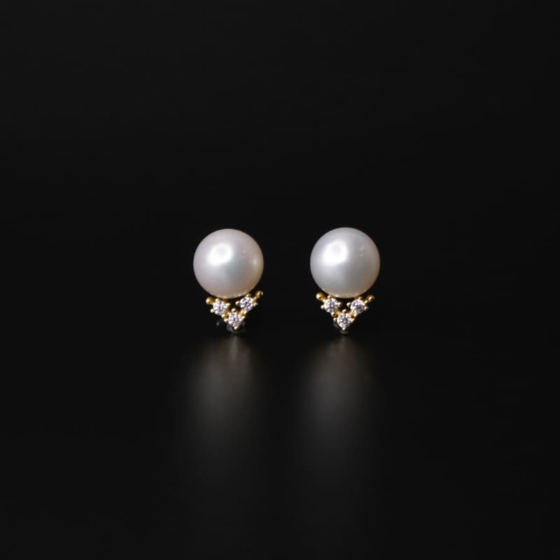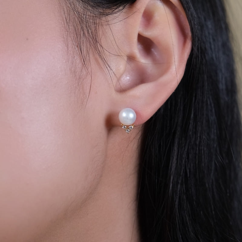 6–7 мм хэмжээтэй байгалийн сувд нь гэрэл тусах бүрт зөөлөн туяарах бөгөөд доорх жижиг циркон шигтгээ нь сувдны гялбааг улам тодотгон, энгийн хэрнээ үзэсгэлэнтэй төрхийг бий болгодог.